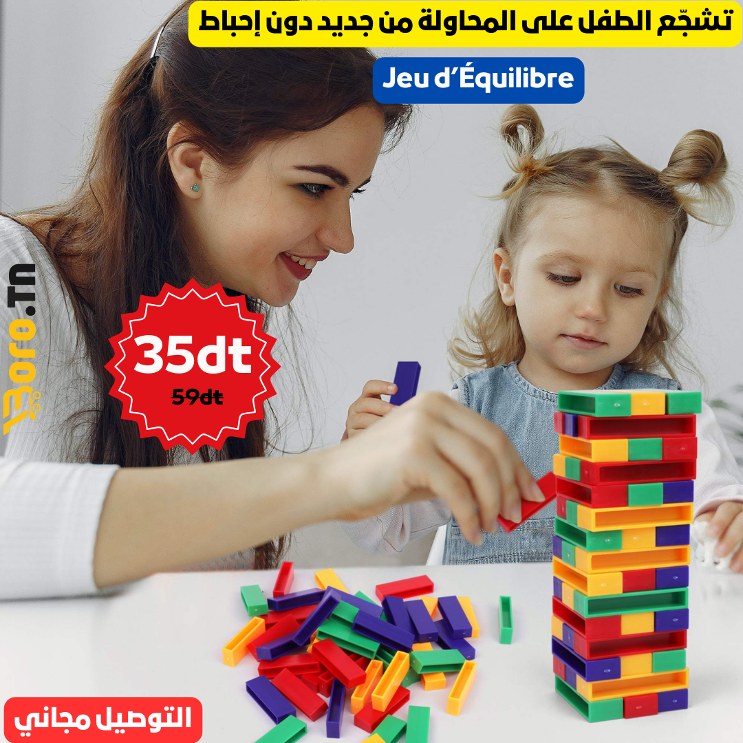 كل قطعة توضع بحذر تزيد من إثارة اللعبة وتشجع الطفل على التفكير والتخطيط قبل الحركة