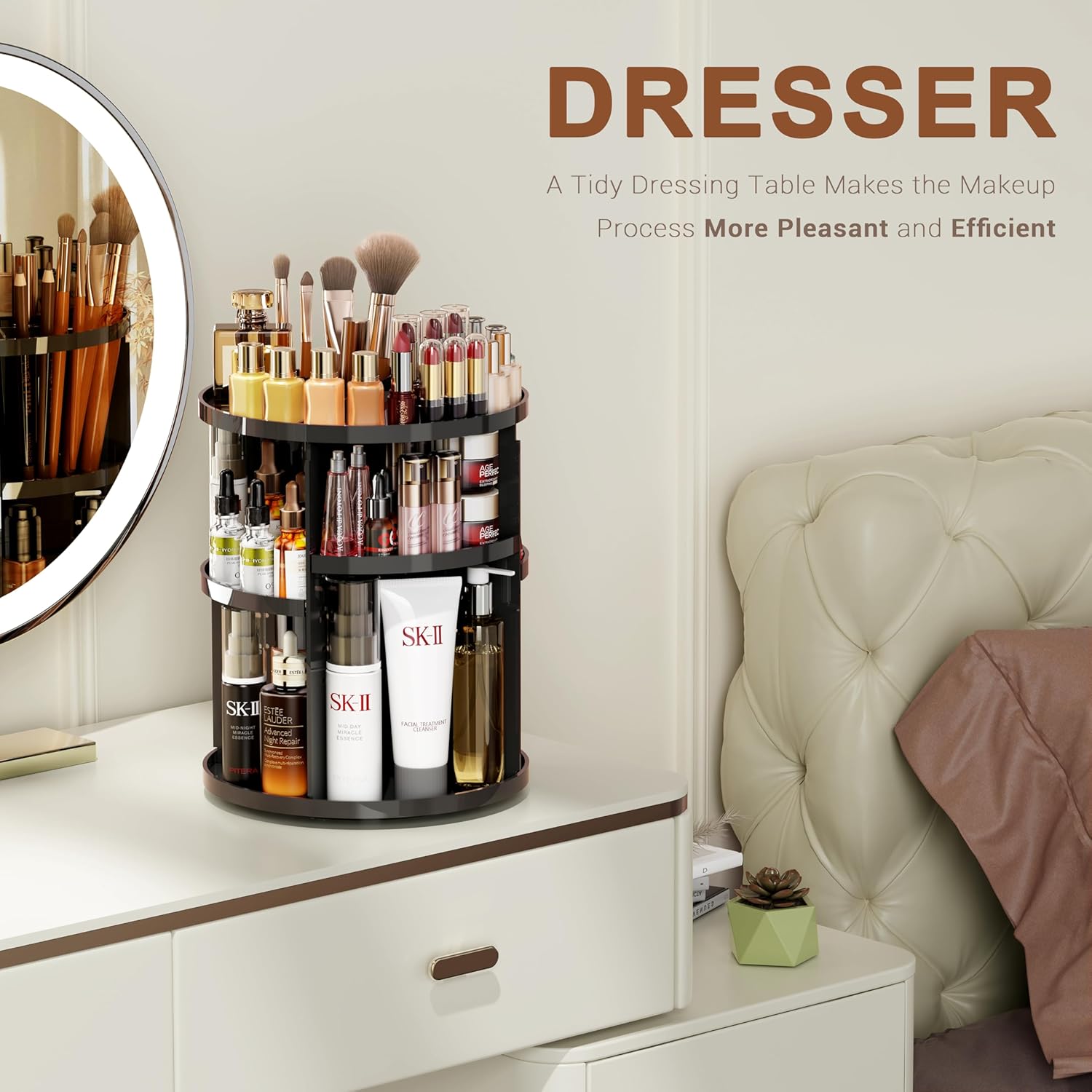 يمكنه استيعاب ما لا يقل عن 30 فرشاة مكياج و 20 من منتجات العناية بالبشرة