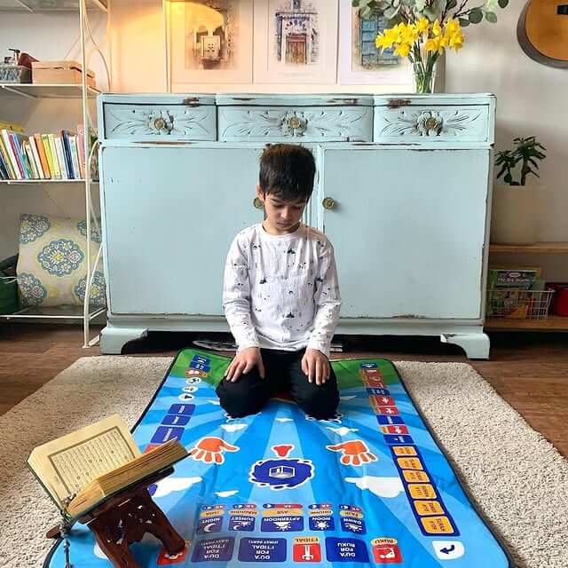 يعلم الأطفال أوقات الصلاة المختلفة والحركات والمواقف المختلفة بالإضافة إلى ما يجب قوله أثناءها